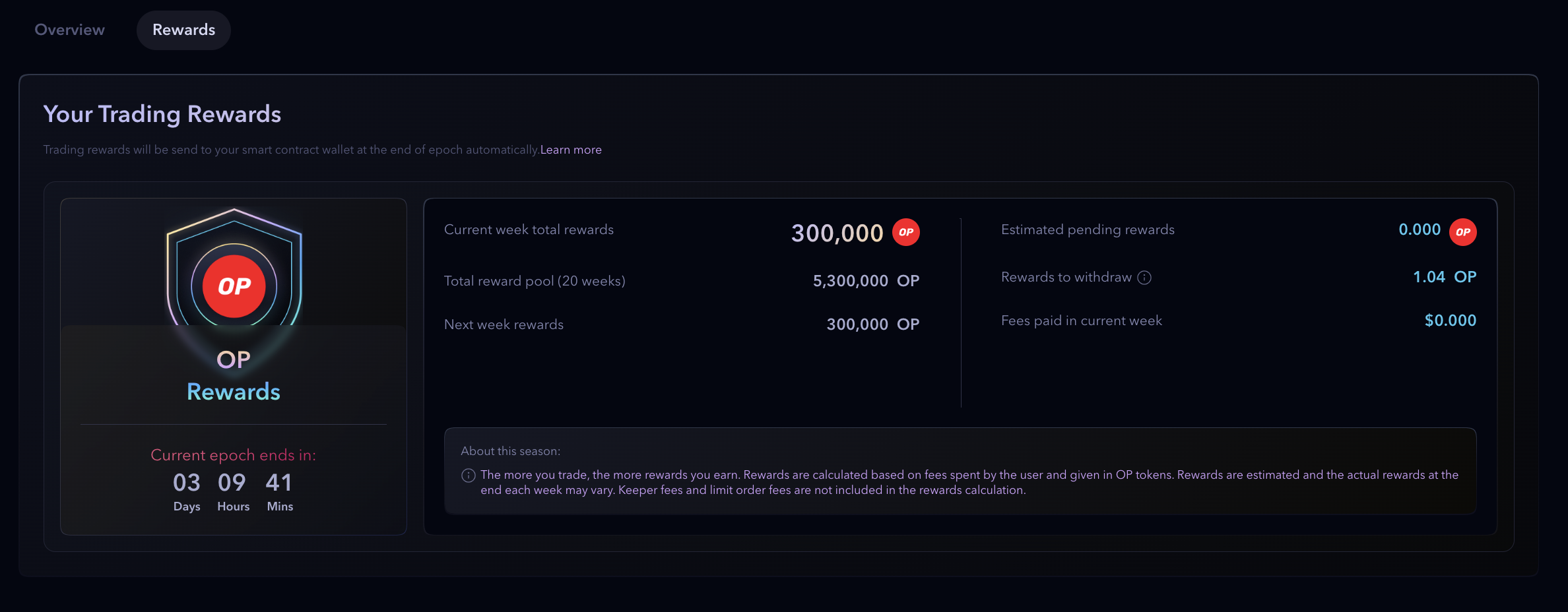 OP Season is a 20-week-long event in which 300,000 OP tokens will be distributed weekly to traders on Synthetix perps. By participating in the OP Season, traders can expect to earn significant rewards that can be used to boost their trades on Polynomial.