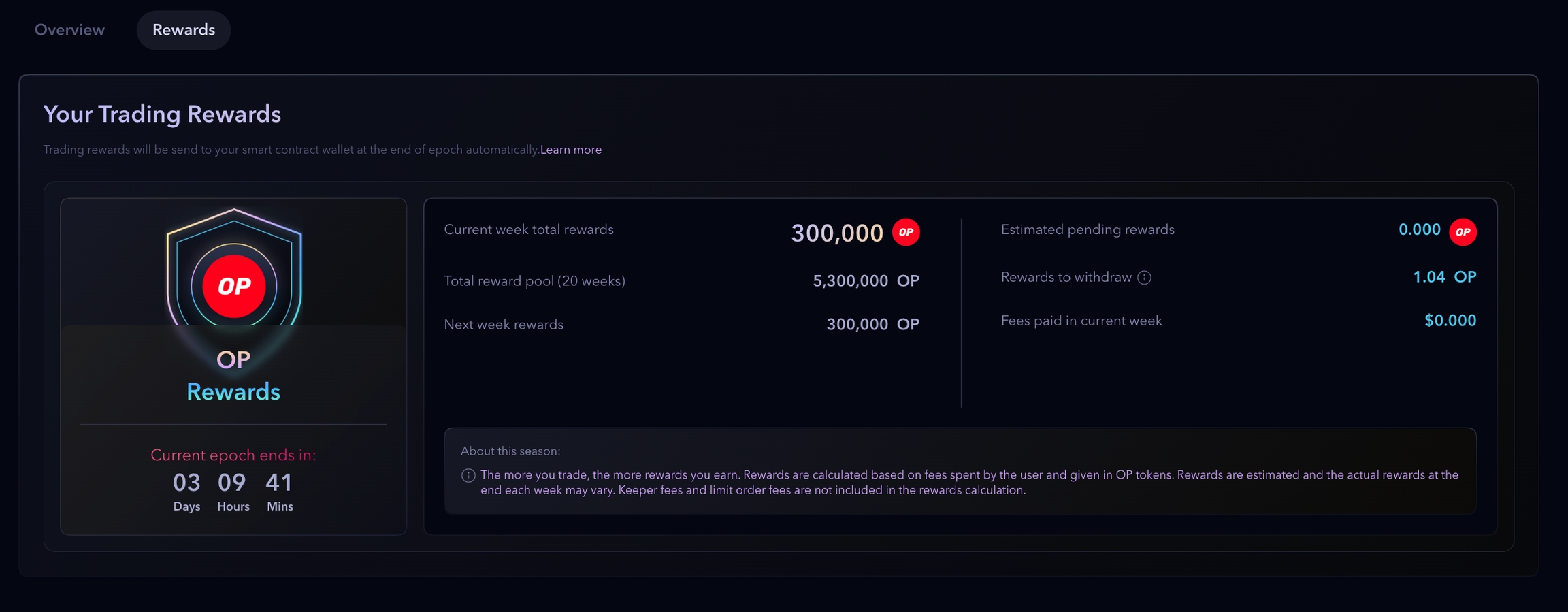 Every Wednesday, Polynomial distributes the OP rewards to the smart wallet based on traders' trading volume and the total volume traded on Synthetix perpetual contracts throughout the week.