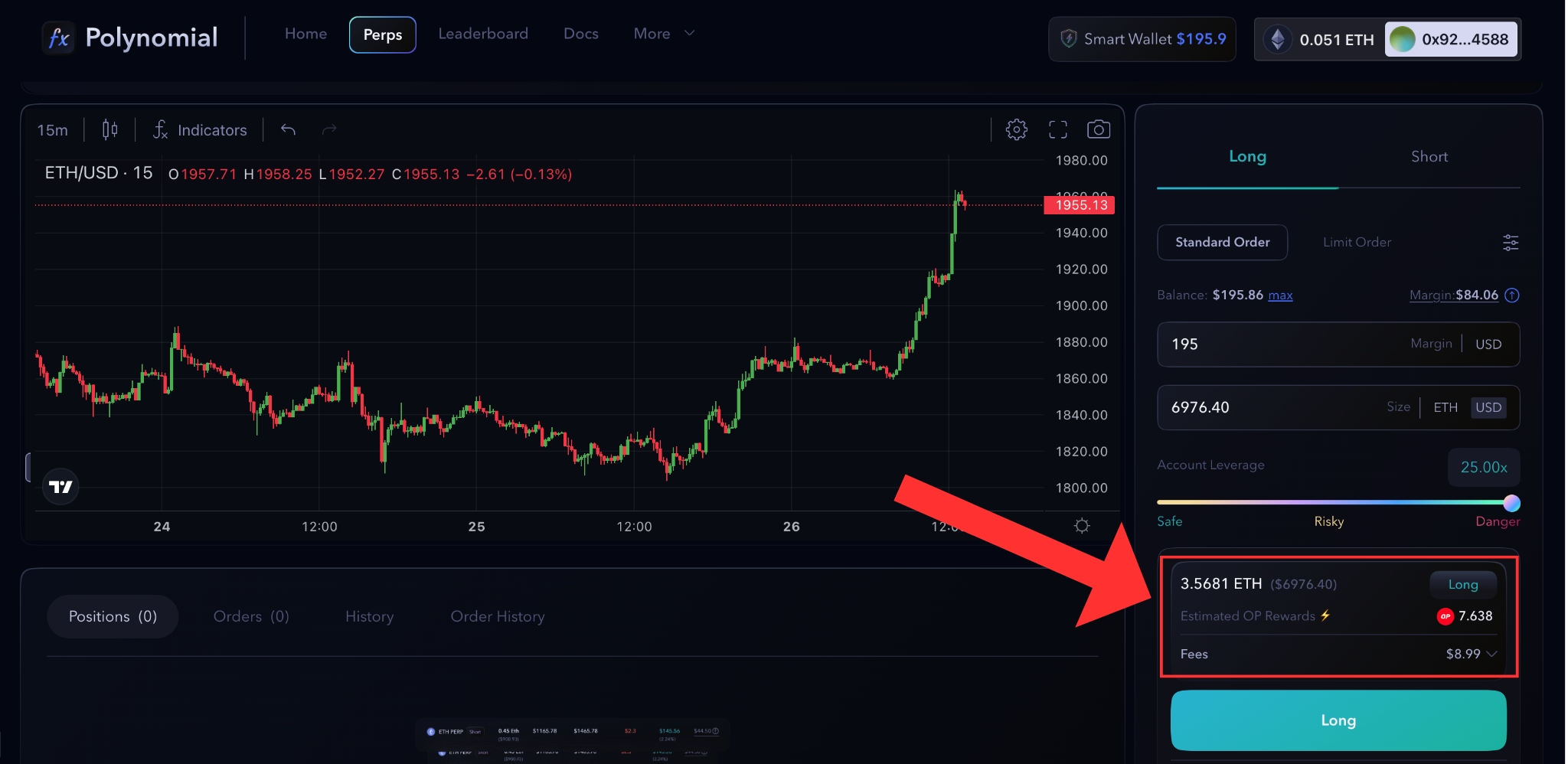 Becoming eligible for OP rewards is a straightforward process. Users can earn these rewards simply by trading with multiple assets listed on the Polynomial platform. The amount of rewards earned is based on the fees paid by the user during their trades.