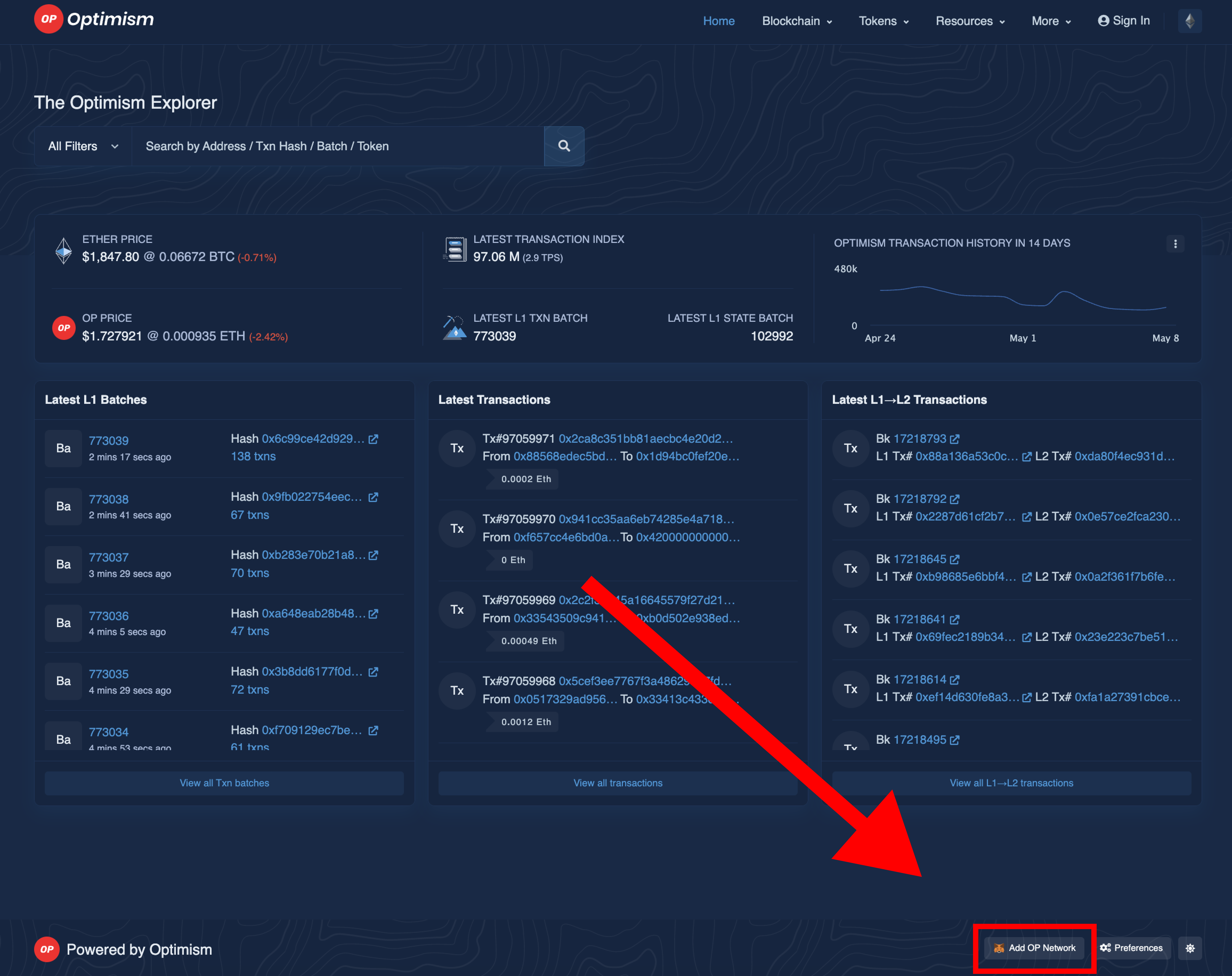 * RPC URL: **<https://mainnet.optimism.io/>**