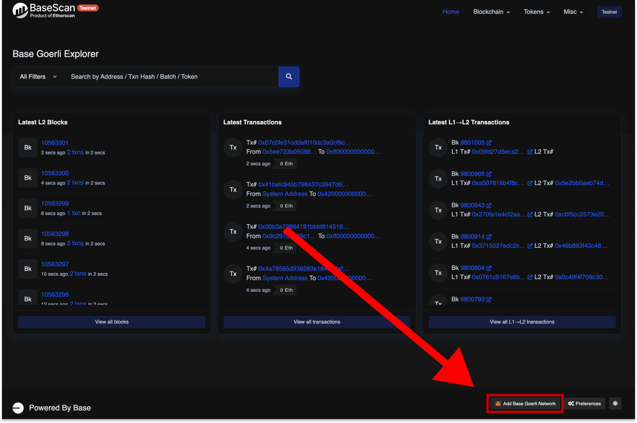 * RPC URL: **<https://goerli.basescan.org/>**
