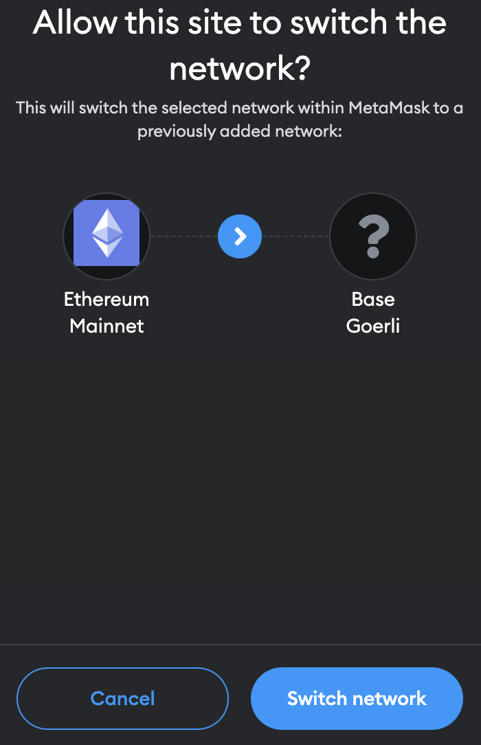 4. Click on "Switch network" to start using Goerli Base Chain.