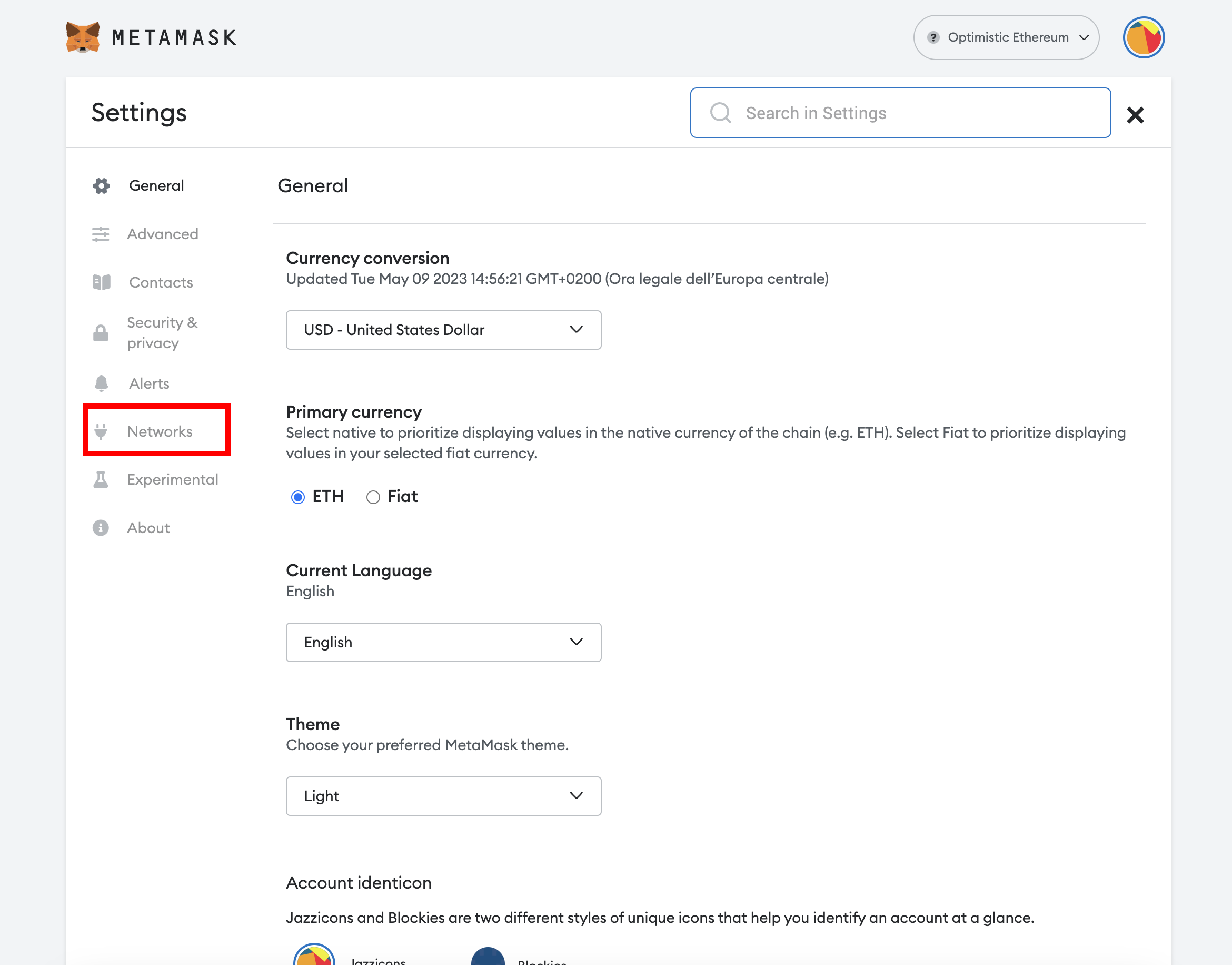1. Open your MetaMask and click **`Setting`**;