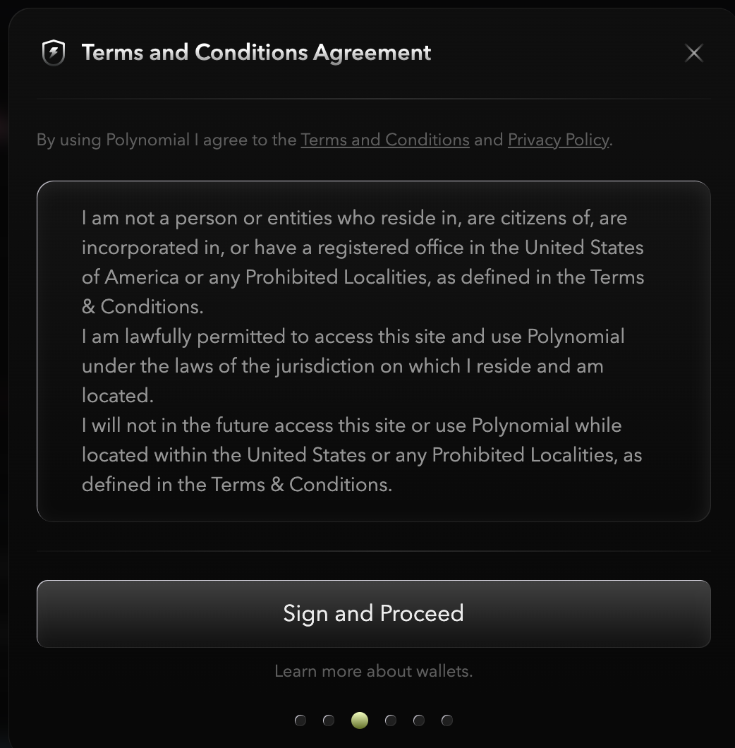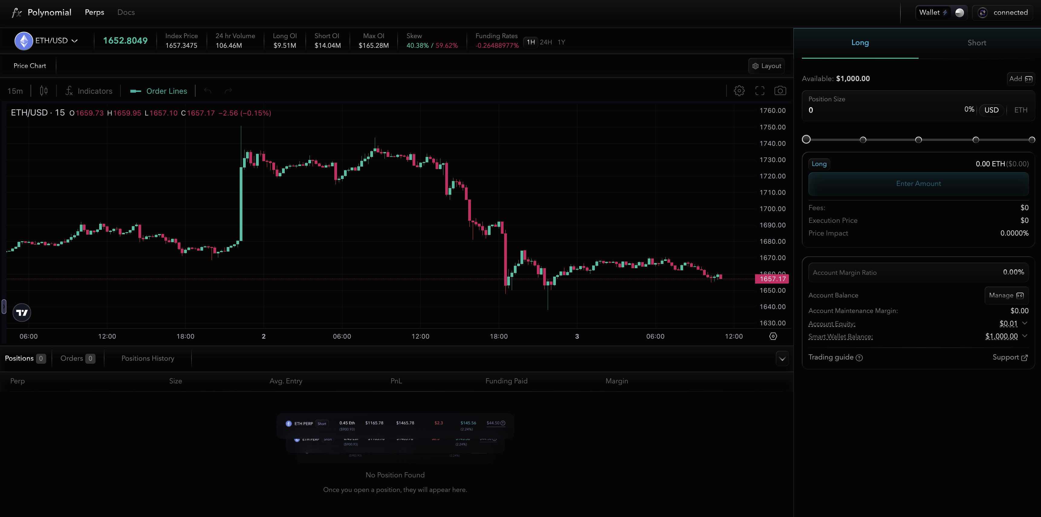 To test the new UI and partecipate in the testnet competition enter the page [**https://trade.polynomial.finance/**](https://trade.polynomial.finance/) and connect your wallet you used during the competition signup.