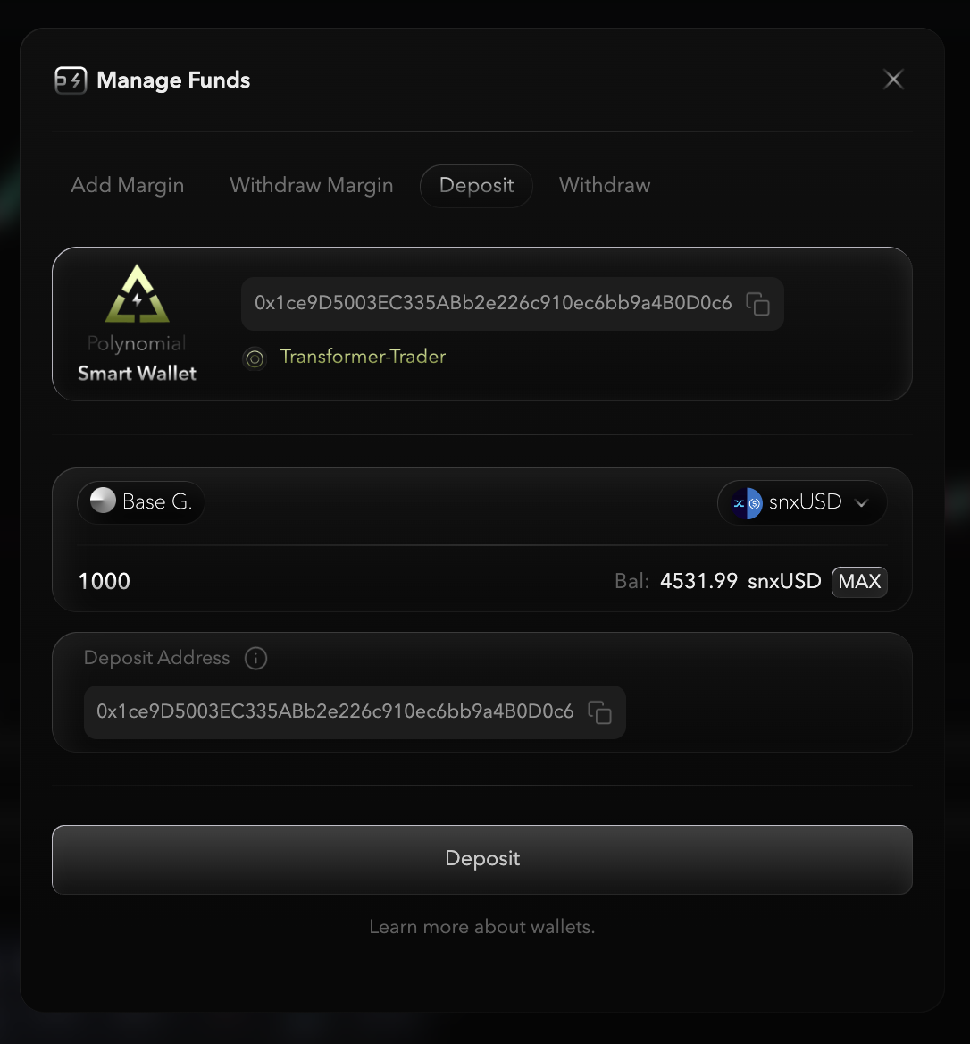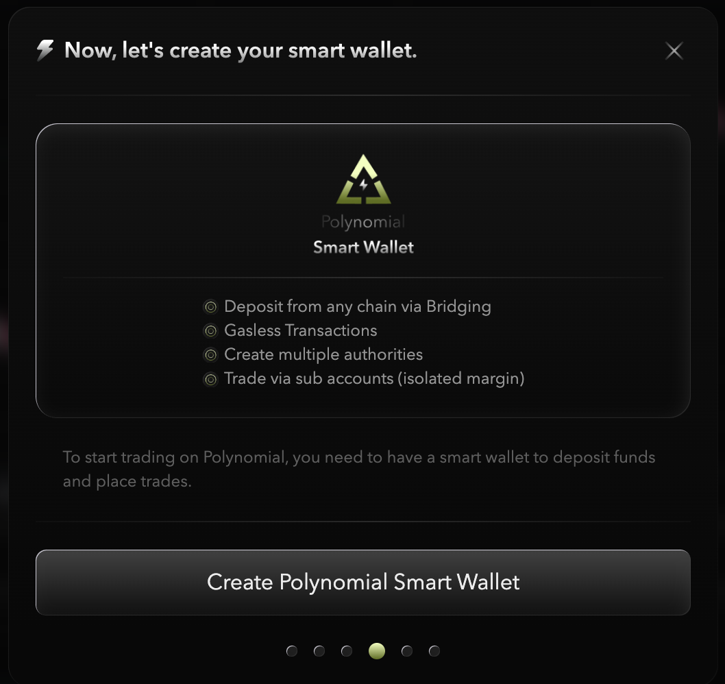 <figure><img src="https://content.gitbook.com/content/5bkfk6Ou7rJFYDoM6vJH/blobs/j1vOay5bvDWclpfDbdca/smart%20wallet.png" alt="" width="375"><figcaption><p>Create <strong>Polynomial Smart Wallet</strong></p></figcaption></figure>