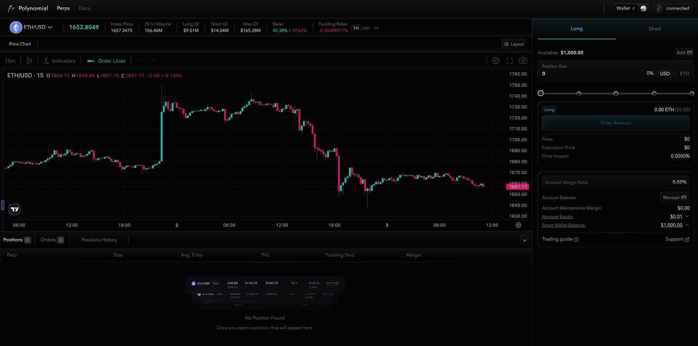 To test the new UI and partecipate in the testnet competition enter the page https://trade.polynomial.finance/ and connect your wallet you used during the competition signup.