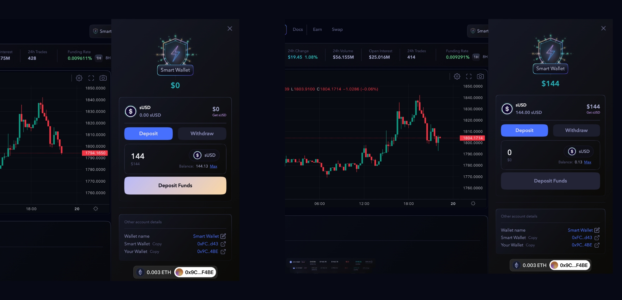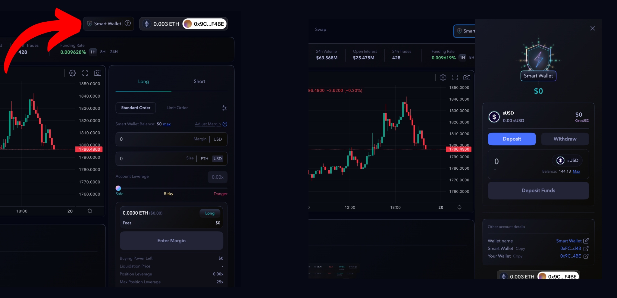 After getting sUSD, click on Smart wallet and enter the amount you want to deposit into the Smart wallet from your wallet.