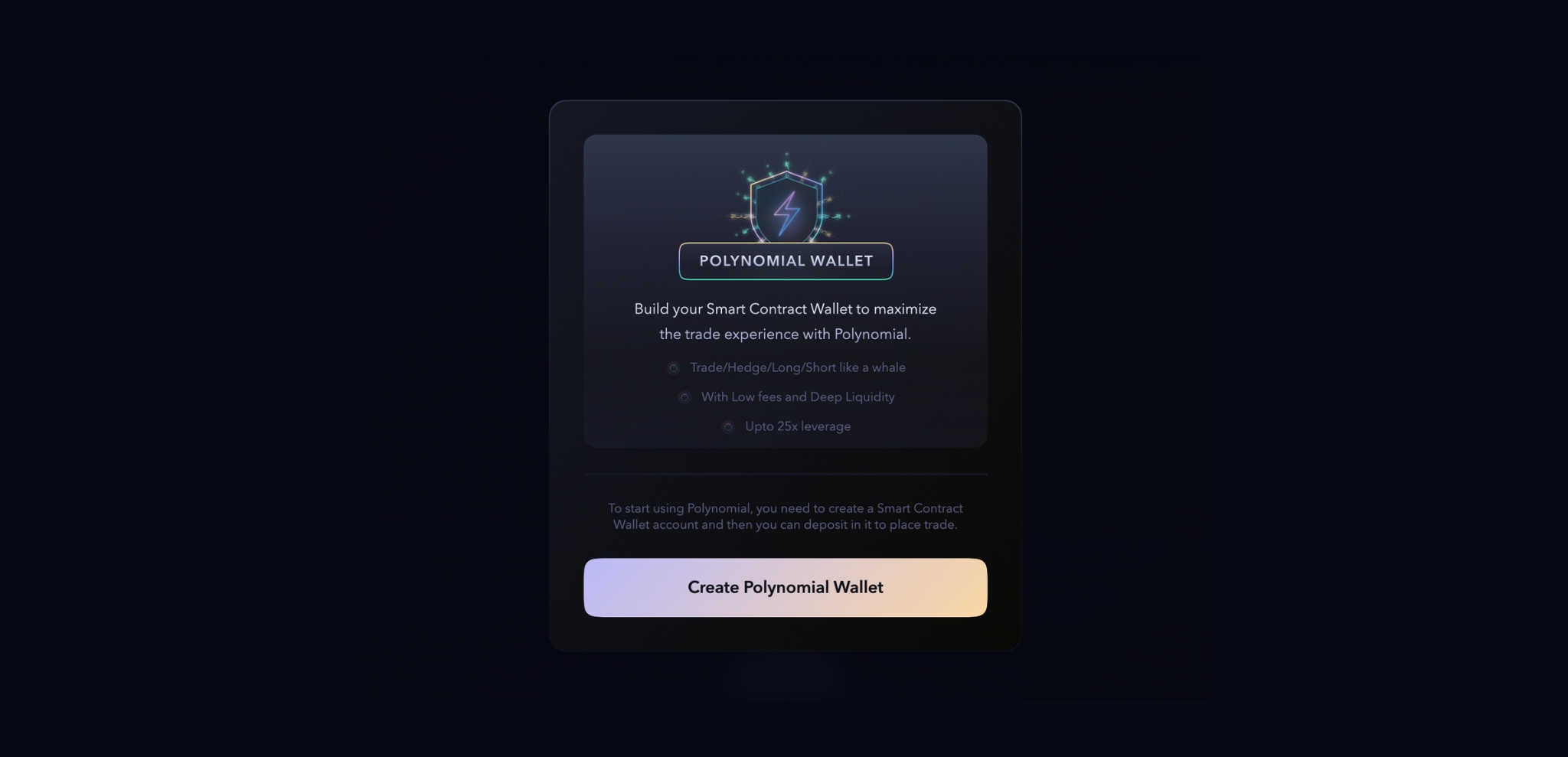 Users need to create a smart wallet to start trading in Polynomial Trade. Click on Polynomial Trade to create one.