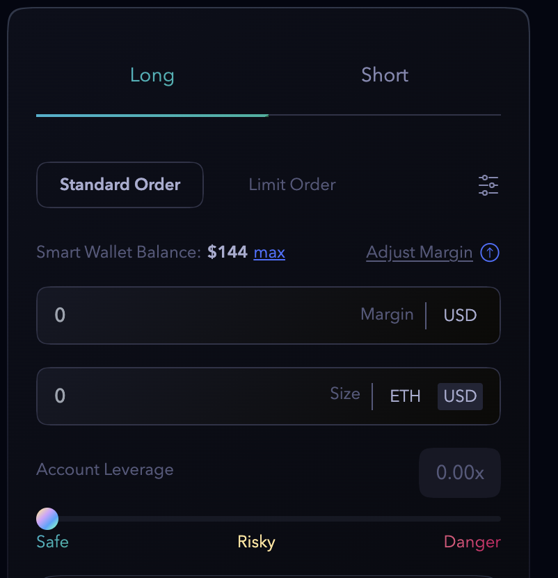 After adding funds to the smart wallet, traders can add margin to the respective markets. The minimum margin to start trading is $50, and no max limit exists.