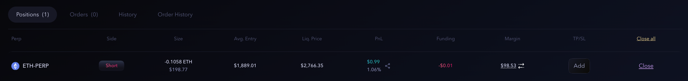 Once the transaction is executed, the order will appear under the Orders tab. Users can cancel the stop order at any point in time.