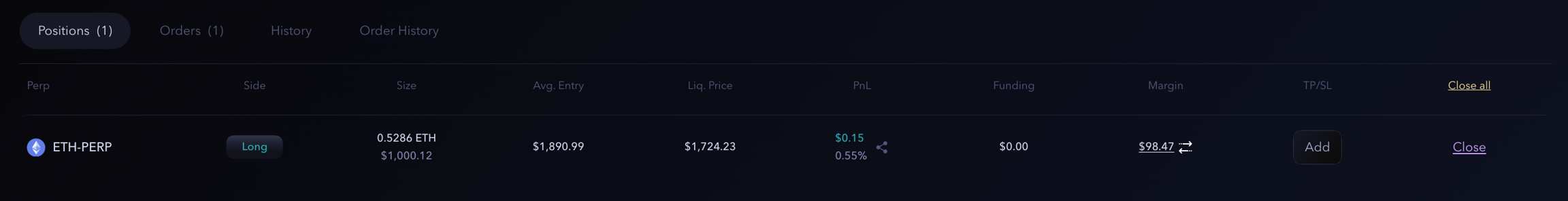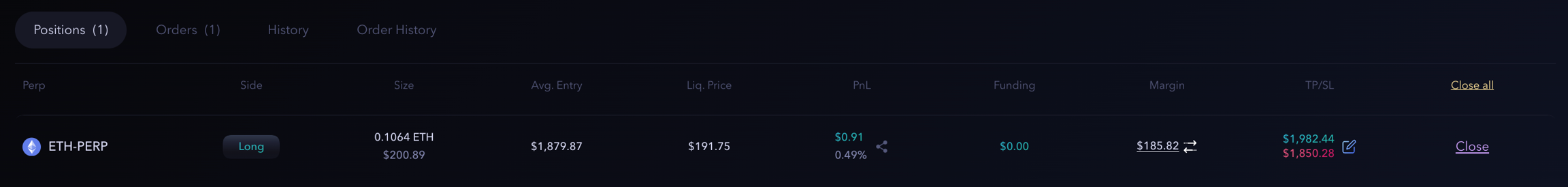 Note: When you create TP/SL with a new position, it is not shown in the Position tab, but in the Order tab. This because the TP/SL correspond to a specific size and not to that particular position.