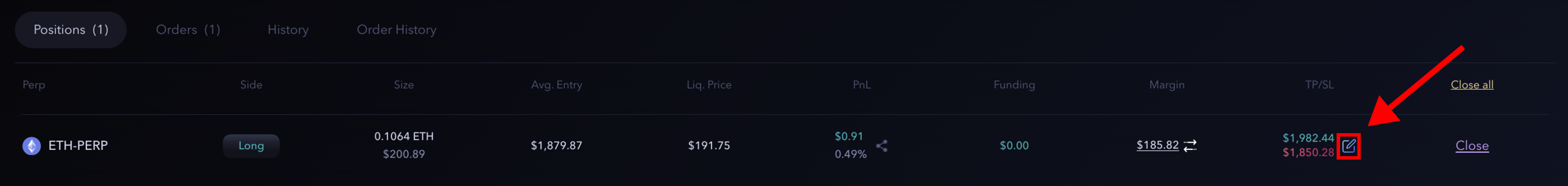 After clicking, the popup similar Add TP/SL to a position will appear. A transaction will exectute this new TP/SL and cancel the previous one.