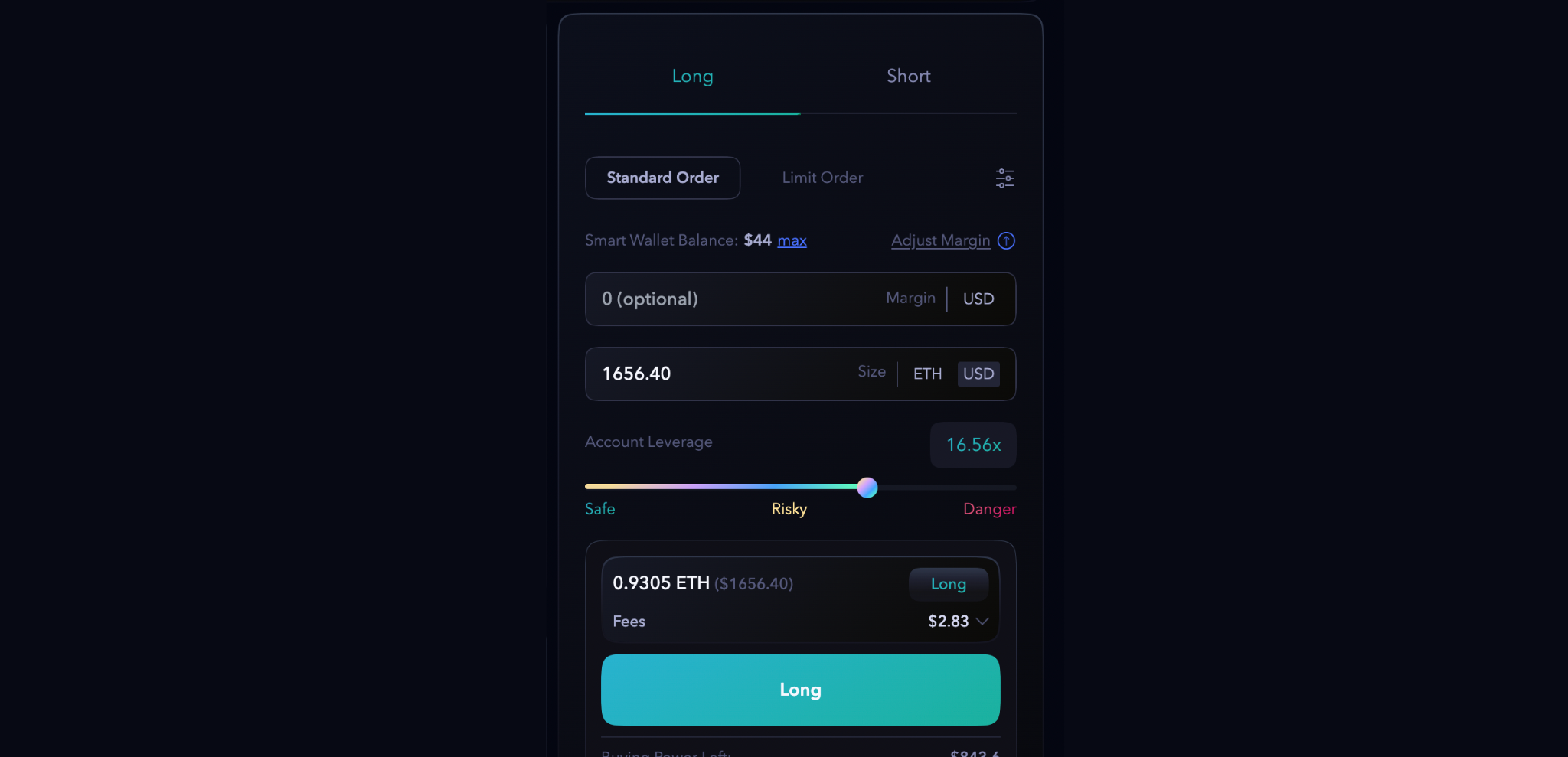 After adding funds to the smart wallet, traders can add margin to the respective markets. The minimum margin to start trading is $50, and no max limit exists.