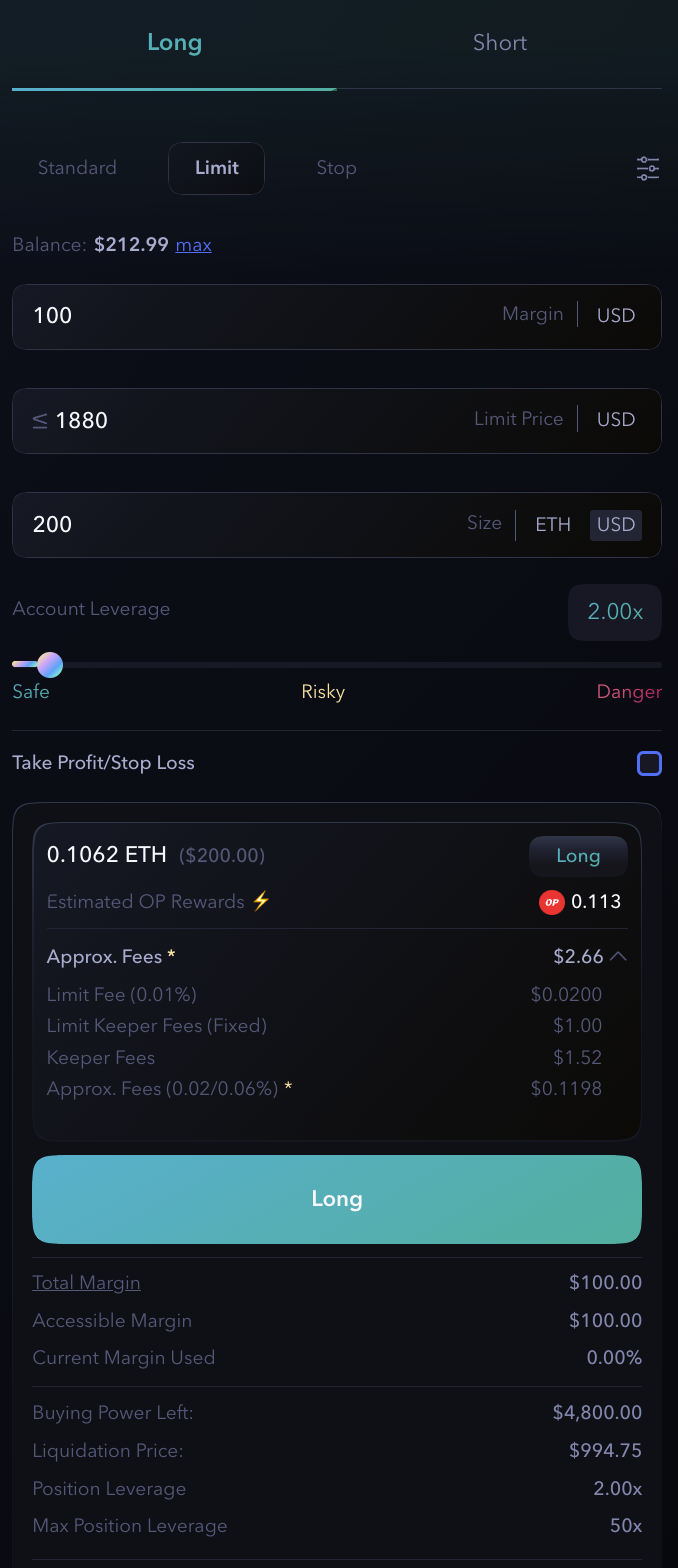 * Enter the position **Size** and **Leverage**;